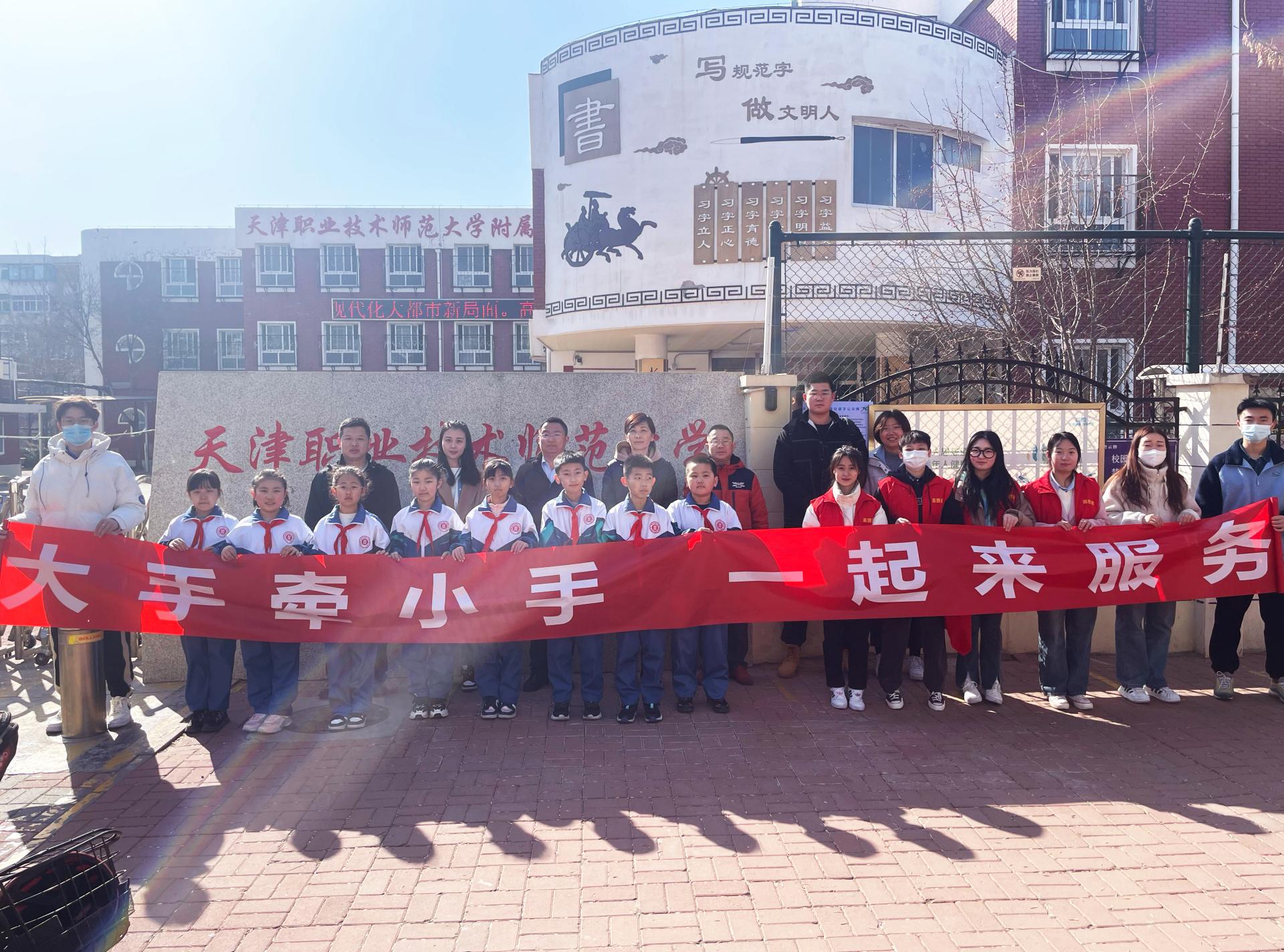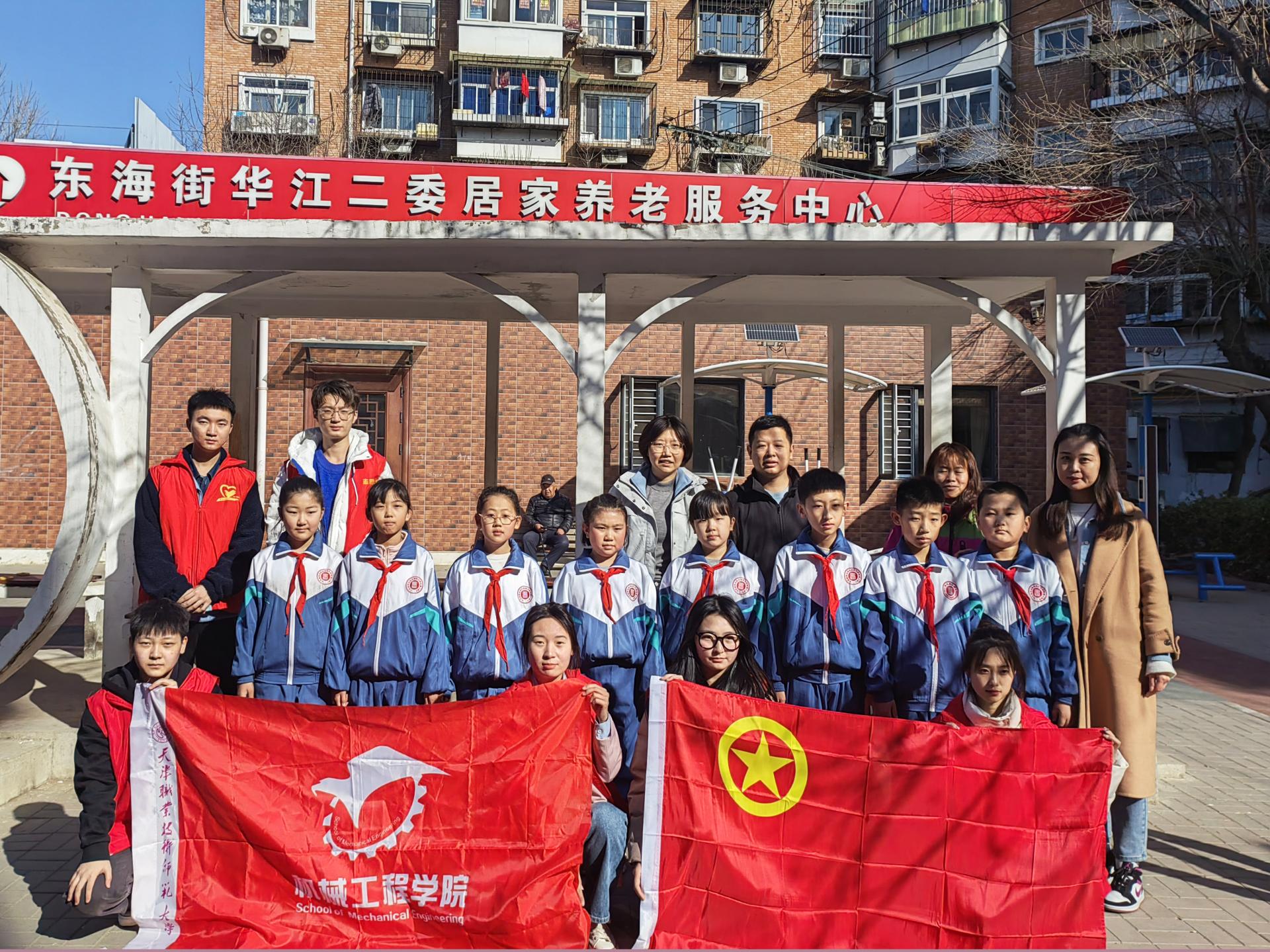 今日机器工程教院团结天津做事技能师范年夜教隶属小教去到天津市河西区华江两委社区启铺“年夜脚牵小脚 一同去效劳”教雷锋系列意愿效劳举动。