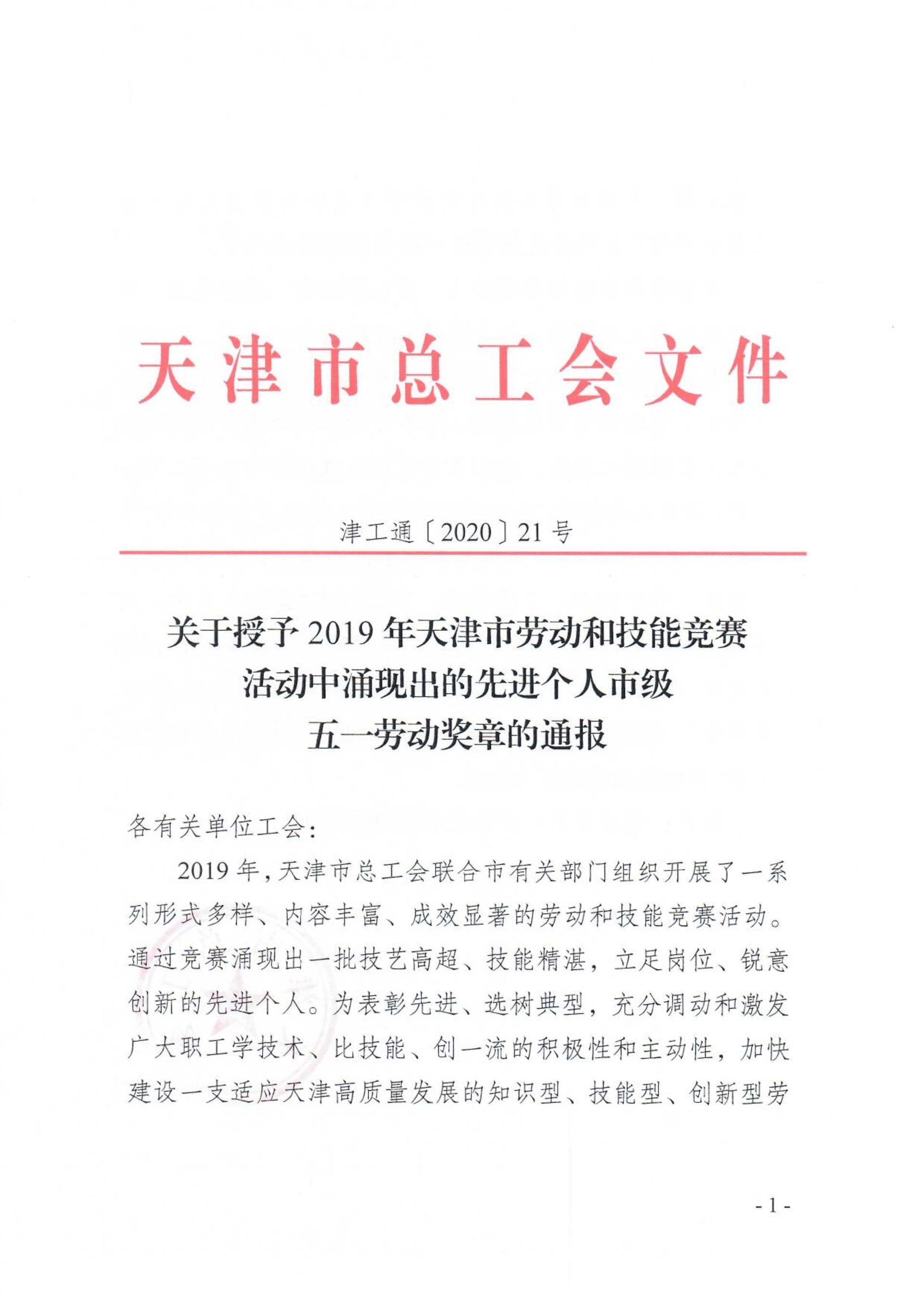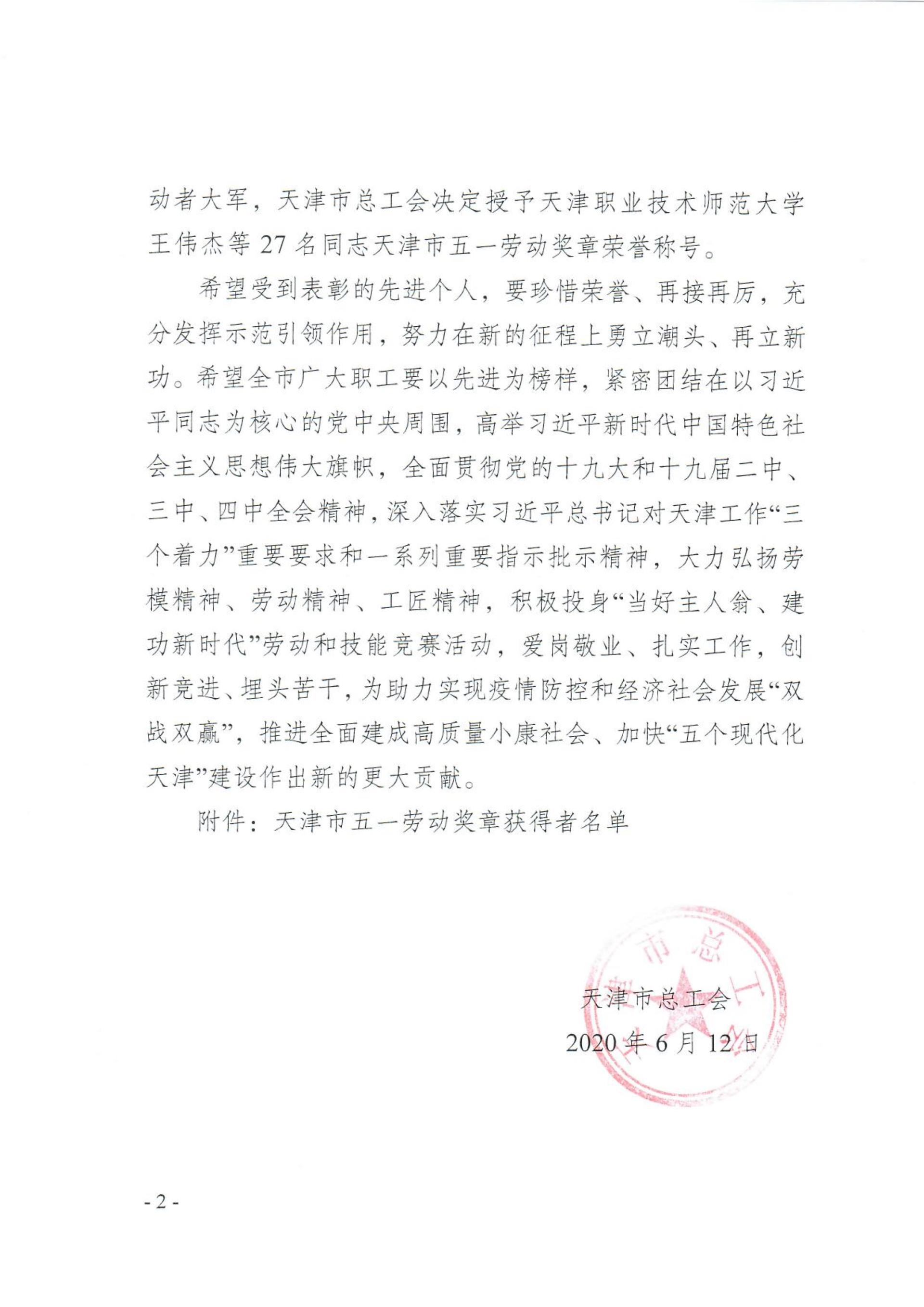 ued体育两名青年教师荣获天津市五一劳动奖章