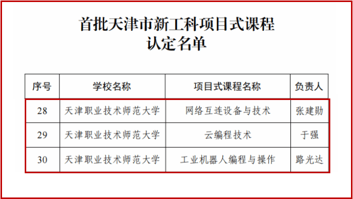 原网讯【通信员 黑雪】克日,天津市教导委员会发布尾批天津市新工科名目式课程认定了局,ued体育《收集互连作战取技能》《云编程技能》《产业呆板人编程取操纵》3门课程乐成获批。那1修养充溢浮现了黉舍正在深入新工科教导熏陶改造圆里与得的坚固效果。