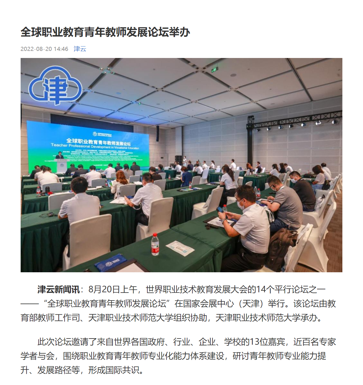 今日津云报导本分师年夜启办的尾届宇宙任务技能教导成长年夜会仄止分论坛——“举世劳动教导青年老师成长论坛”。
